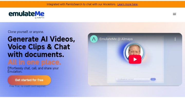 EmulateMe lets users create digital clones of themselves as avatars, by simply uploading an image and a voice and voice samples. Users can train their avatars with documents, then chat with them and both videos and voice clips.