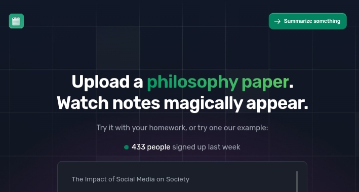 Notably.ai is a study assistant that turns academic materials, news articles and more into brief notes and concise summaries. Tailor-made for professionals and students, it helps turn lengthy content (such as PDFs) into structured, easy-to-review, and quick-to-digest study notes.