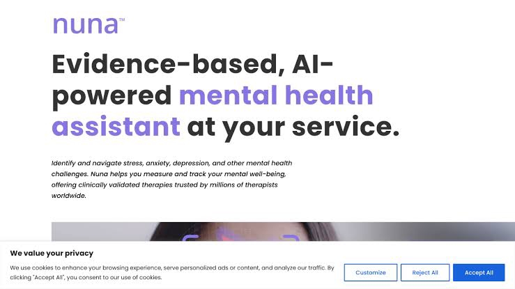 Nuna is a mental health assistant who offers clinical therapies by measuring and tracking mental well-being. It identifies and deals with mental challenges like stress, anxiety and depression. Nuna employs sentiment analysis, facial scanning, journaling, and evidence-based support tools( CBT, ACT and MSBR) to provide patients with personalised emotional insights and therapy.
