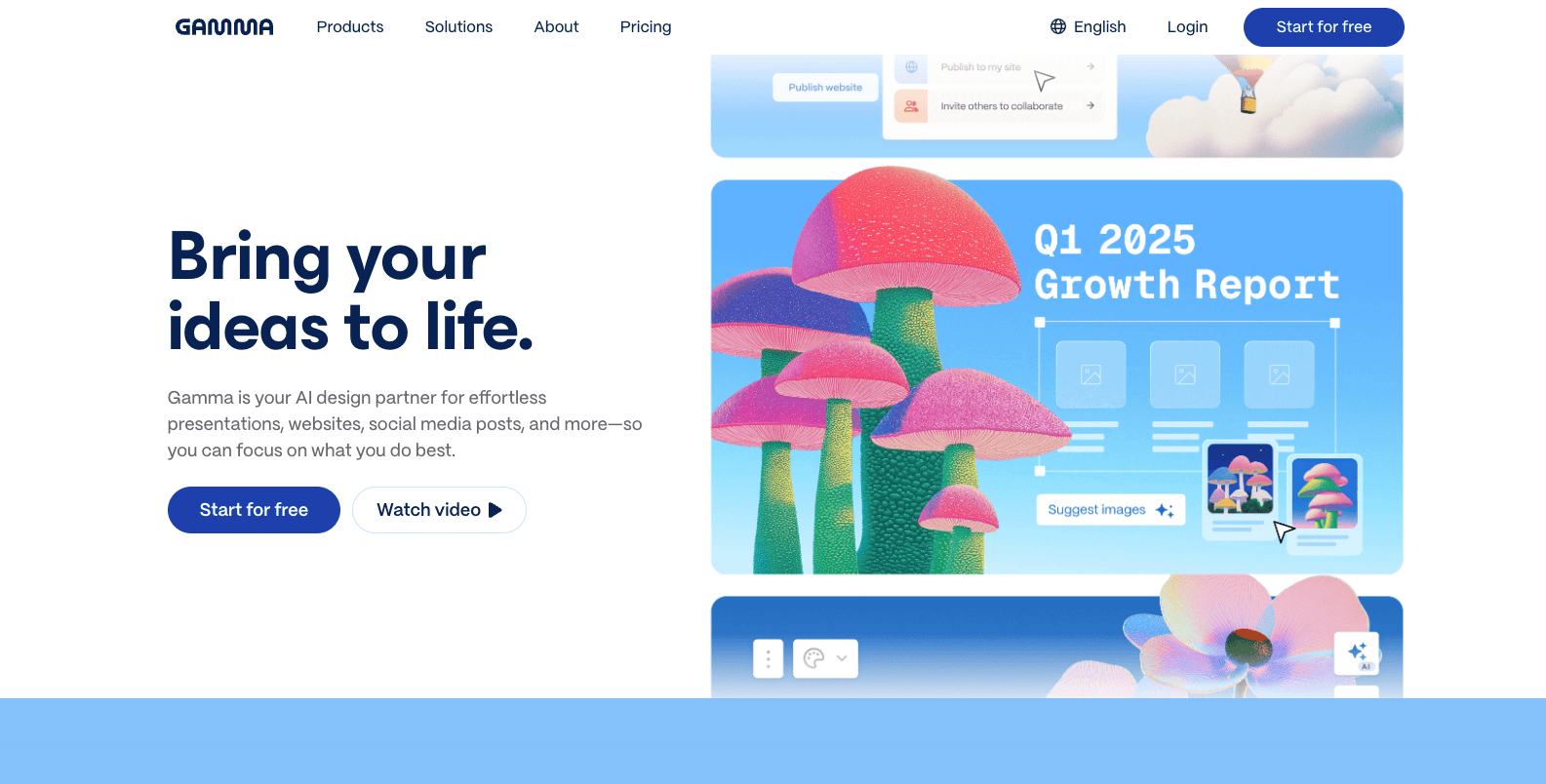 Gamma utilises AI to help users generate webpages and presentations via prompts. It saves users the stress of designing from scratch by providing layouts, visuals and different design styles.